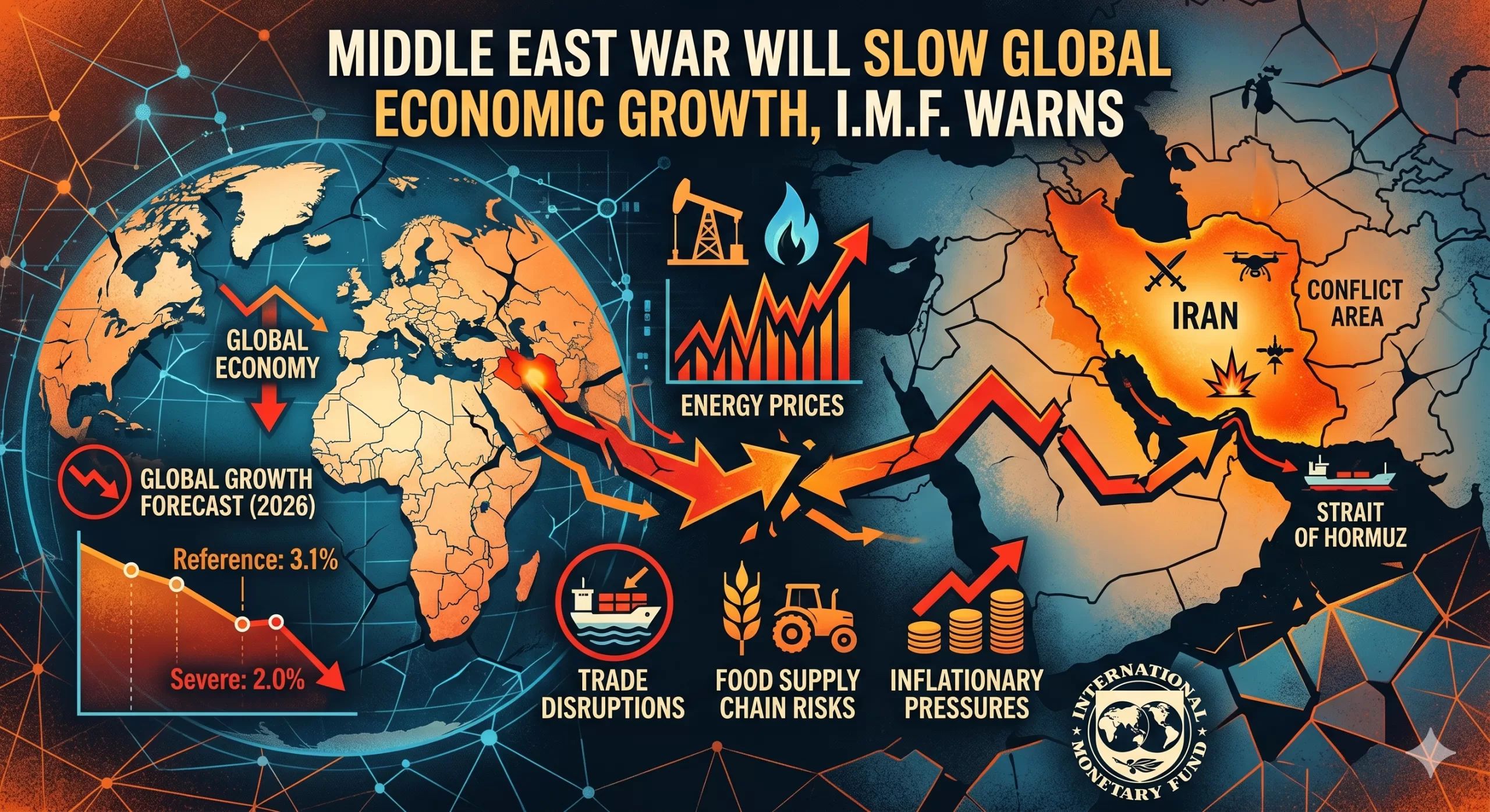 Middle East War Will Slow Global Economic Growth. The global economy, which had shown surprising resilience through early 2026, is now facing a significant “speed bump.” In its latest World Economic Outlook released today, April 14, 2026, the International Monetary Fund (IMF) warned that the escalating conflict in the Middle East—specifically the war involving Iran—has halted global momentum and forced a downgrade of growth projections.